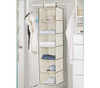 Fitting all your stuff from home into your dorm closet can be a challenge, but at least with our 6 Shelf Organizer - Cream with Brown piping closet organizer it's a little bit easier. This product is the ultimate in hanging sweater shelves. Not only does it have the 6 shelves for sweaters, t-shirts or jeans, but it also has side pockets for shoes and other accessories.