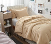 At DormCo, our selection of Twin XL comforter sets are curated to only be from the best bedding brands, to elevate both the style and comfort of your dorm bed. Our Dorm Haul® - Cozy Twin XL College Comforter - Marzipan is no exception, featuring high quality bedding materials and a simple yet impactful design. This oversized Twin XL designer comforter set boasts a neutral warm beige color that will perfectly complement any dorm room aesthetic. Plus, with a matching standard pillow sham and a matching headboard pillow sham, every inch of your Twin XL bed will be covered in designer dorm bedding!