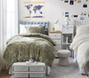 Not to mention, this extra long Twin comforter set also looks great in any style of dorm room decor. With a soft muted sage green shade, this designer dorm bedding set instantly elevates your dorm room style without being overpowering. Neutral enough to match any dorm aesthetic, yet cozy enough to make your dorm feel like home, this oversized dorm comforter set is a versatile choice that is easy to coordinate with your other dorm room accessories. This green college bedding set even includes a matching fluffy pillow sham to add the finishing touch to your trendy dorm room setup! With its ultra-plush thickness, removable washable cover, and stylish neutral design, this must-have Twin extra long comforter set is your ne secret weapon for surviving college life in coziness.