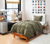 Have you ever tried to sleep in a hot, stuffy room? It’s impossible. Even if you count sheep, take a melatonin vitamin, or read a really, reeaalllly boring textbook, nothing seems to help when you’re too hot and sweaty to sleep. Nothing except for a cooling Twin XL comforter set! Our Snorze® Cloud Comforter - Coma Inducer® Ultra Cozy Bamboo - Twin XL in Burnt Olive will give you some relief if your dorm room AC isn’t doing its job. Featuring naturally cooling bamboo fabric on both sides, this dorm comforter set is literally cool to the touch. It may sound counterintuitive to reach for a thick blanket when you need to cool down, but you may find yourself snuggling up under this bamboo Twin XL bedding set to help beat the heat! High quality bamboo fabric doesn’t just help regulate your body temperature, but it also has a silky soft handfeel that will make you obsessed with your dorm bedding. And with an included bamboo pillow sham, you can even rest your head on soft cooling bedding for great sleep all semester long. This extra long Twin comforter set also features a fluffy lightweight down alternative filling that will help keep you cozy without trapping your body heat. Not to mention, in a trendy green color scheme, this designer Twin extra long comforter set will look great in any girl’s or guy’s dorm decor! For luxury dorm bedding that won’t make you overheat, you can’t go wrong with this college comforter set made with bamboo.