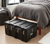 Or should be say hit the ground rolling? With a useful dorm item like our The Iron Brick® Trunk - STRONGEST College Trunk - Black, built-in wheels and a reinforced pull handle make it easy to cart all your college supplies from your car directly into your dorm room. You’ll be rocking and rolling in no time with this space-saving dorm room footlocker chest! And after you unpack all your college items, you’ll be left with a spacious college storage chest that can be used for extra Twin XL bedding, your clothes and shoes, sports equipment, or anything else that you want to keep neatly stored away in your dorm room setup. Designed to slide right underneath your dorm bed, this space-saving trunk is clearly designed with small dorm rooms in mind! But with it’s neutral black color, you may be tempted to keep this cool dorm item out as a part of your girl’s or guy’s dorm decor. No matter where this black plastic storage trunk ends up in your dorm room, you’ll be glad that you started your dorm shopping off on the right foot!
