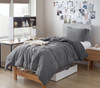 Every inch of this true Twin XL comforter set is designed to do just that. This college bedding set includes an extra long Twin comforter and standard college pillow sham, both made with extraordinarily cozy dorm bedding materials. The top side of super soft microfiber reverses to a unique microfiber that has been infused with spandex, which gives this gray college comforter an insanely soft and cool feel. Combine this high level of softness to a plush inner fill and snuggling up with this XL Twin comforter will feel just like heaven. If you've ever felt or worn what feels like the most comfortable pair of yoga pants, you'll get what we are talking about. As a nice bonus, this gray Twin extra long bedding set has a heathered top that adds a little dimension when it comes to your college décor.