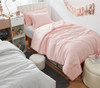 Looking for trendy dorm bedding that won’t break the bank? This designer Twin XL comforter set is the answer! With a soft pink tone on both sides, this extra long Twin bedding set will add a pop of color to your chic dorm decor. And at a budget-friendly price, this dorm bedding set will help you save money on dorm shopping so you can buy more cute dorm accessories! This extra long Twin comforter set even includes a matching standard pillow sham and a headboard pillow sham, so you can check two more items off of your dorm shopping list. But of course, for a college dorm comforter this cute and this affordable, surely there must be a catch, right? Wrong! At DormCo we understand that college is expensive, which is why we offer high quality dorm bedding at affordable prices so you can get the dorm of your dreams on a college student budget. Even though this inexpensive bedding set has a low price tag, we didn’t cut any corners in terms of quality. With a silky soft microfiber shell encasing a thick, fluffy down alternative filling, this pink Twin XL comforter set is sure to exceed your expectations for cozy college bedding.