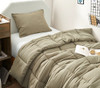 Just because this extra long Twin comforter set is on the affordable side doesn’t mean we cut any corners in terms of quality or style. Of course, as a part of the best-selling Coma Inducer® premium bedding brand, it goes without saying that this college bedding set is sure to exceed your expectations for cheap dorm bedding! Crafted with a unique blend of polyester and nylon, these cooling bedding materials are selected to help regulate your body temperature so you don’t overheat in your stuffy dorm room. And with a light, fluffy inner filling, this plush dorm comforter set is the perfect balance of coziness and soothing breathability. Plus, in a muted sage green color, this extra long Twin bedding set will easily match any girl’s or guy’s dorm decor. This designer dorm bedding set even includes a matching pillow sham to add the perfect finishing touch to your Twin XL bedding essentials for college!