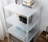 These 18” x 24” plastic wire shelf covers are designed to fit the Mini Shelf Supreme, Extra Height Mini Shelf Supreme, the side shelves for the original Shelf Supreme, and even the Suprima Fridge Stand and Double Height Fridge Stand. With rounded cutouts to fit the round poles of Suprima furniture, these high quality shelf liners look custom made! And made with frosted white, frosted black, or solid black plastic, these clear liners provide a sturdy surface for your dorm accessories. No more worrying about your dorm snacks falling through the wire grates, or your dorm microwave feet slipping between the wires. Plus, these plastic shelf liners for wire shelving are super easy to clean! Simply wipe down with soapy water to easily clean up any spills. Upgrade your Suprima shelf with these 18” x 24” wire shelf liners!