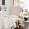 Looking to add a soft, stylish finishing touch to your cute dorm room decor? The Tavira Allure® Outlet College Dorm Headboard - Ribbon Tufted Rectangle - Light Pink is the perfect blend of cozy comfort and useful convenience that makes campus life a little easier. With its plush upholstery and classic tufted design, this Twin XL headboard brings a subtle texture and a pop of light pink color that instantly adds a little personality to your trendy dorm interior design. Whether your dorm room aesthetic is cute and cozy or polished and put-together, this pink dorm headboard fits right in!